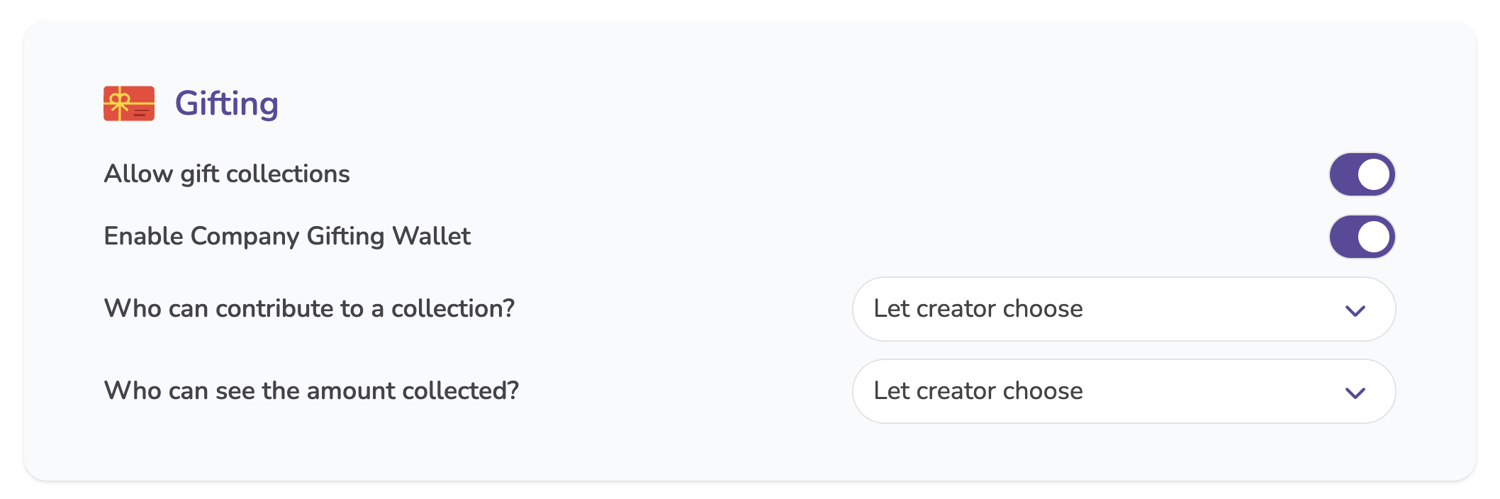 Choose whether the Company Gifting Wallet feature is enabled in your organization.
