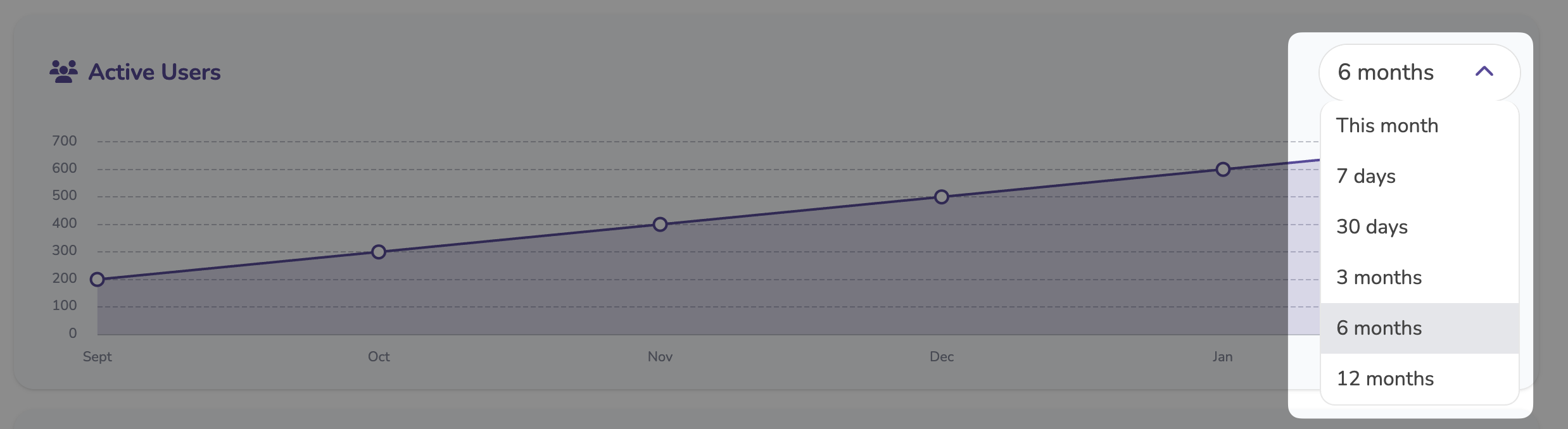 Active users are reflected in the Active Users analytics within the Admin panel. An active user appears in the chart when they perform at least one of the above qualifying actions during the selected time period (for example, the last 6 months):