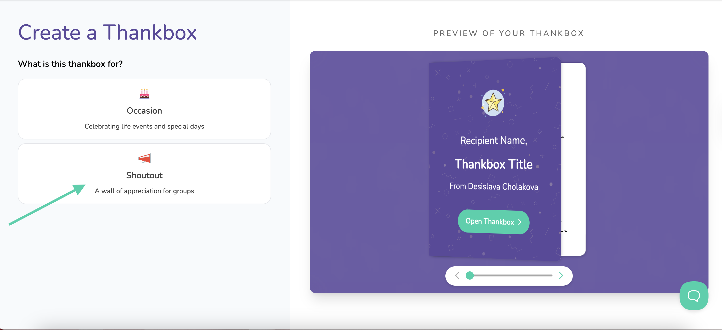 Unlike regular Thankboxes that are sent to a specific person, Shoutout Thankboxes are visible to everyone in the organisation. Anyone can view and contribute messages, making them ideal for group recognition.